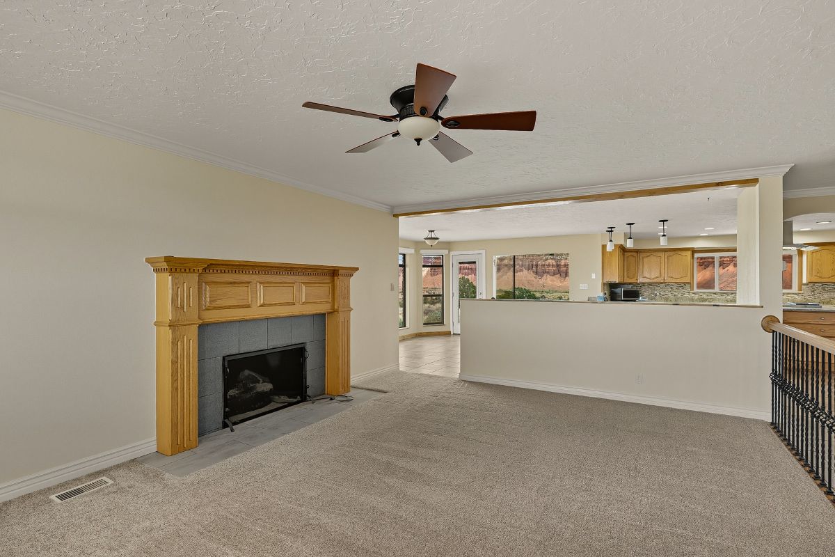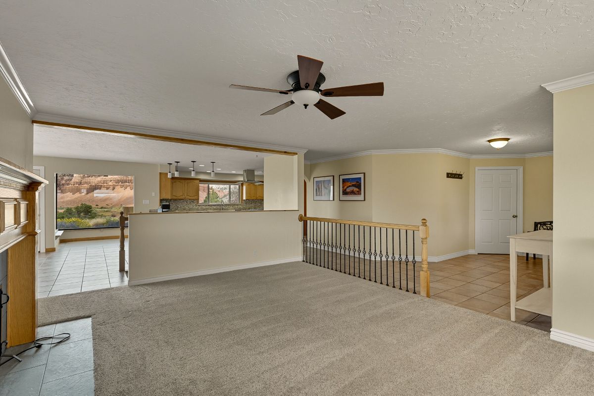 Substantial price drop for this Torrey home with unobstructed red cliff views! Built in 1993, updated ( new roof, new windows, upgraded kitchen) and well-maintained by the former superintendent of Capitol Reef National Park, has perfectly placed windows for fantastic views. The sunroom on the northwest side of the house has views of the night skies and red cliffs. The main floor is an open concept design with large entryway, living and dining rooms and adjoining kitchen. The kitchen, with plenty of cupboard space and granite countertops throughout, has a peninsula and large island, gas and electric cooktops, a double oven, and a sizable pantry. The primary bedroom has a spacious bathroom with large walk-in shower and a luxurious jetted tub. The laundry room connects to the large, attached 2+ car garage with built-in workbench for mud-and snow-free entry into the house. The lower level, with easy care luxury vinyl insulated flooring throughout, has four bedrooms, a full bathroom, and a family room. Central air and a heat pump have been installed. The wide covered porch on two sides of the house provides pleasant outdoor space with outstanding views of the red rock cliffs, Boulder Mountain and the Henry Mountains. The yard is low maintenance, minimal landscaping with shade trees. The home has Torrey Town water and the access roads are maintained by Torrey Town. All appliances are included.