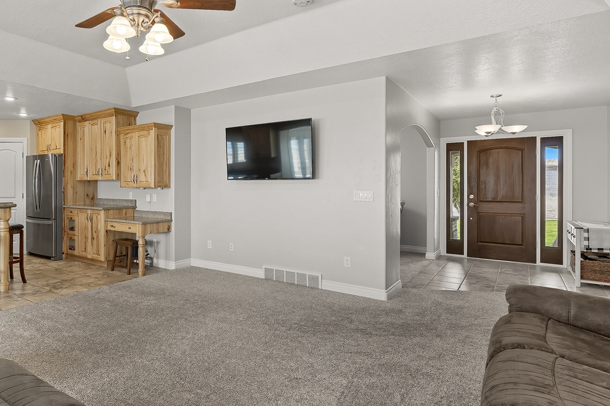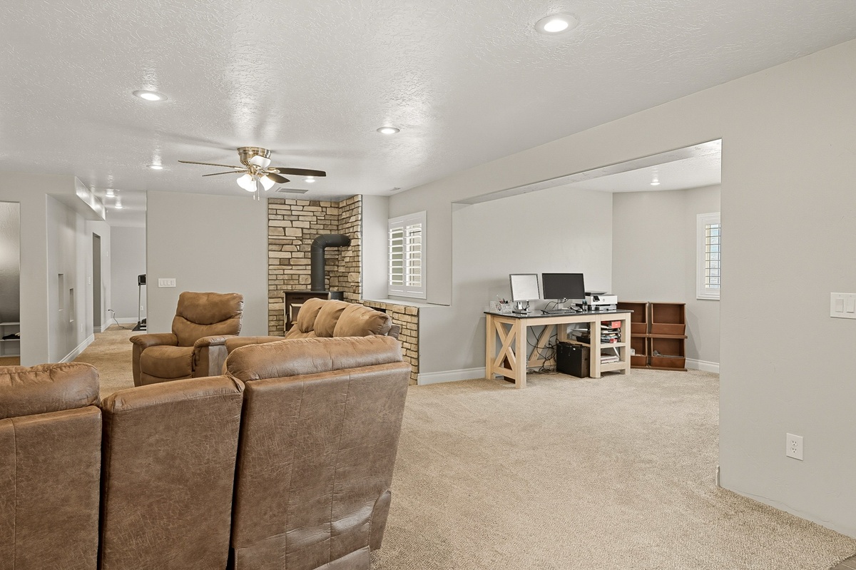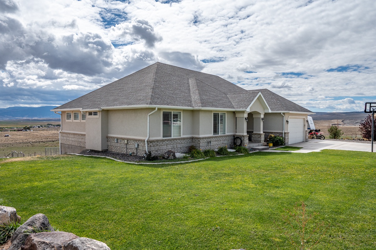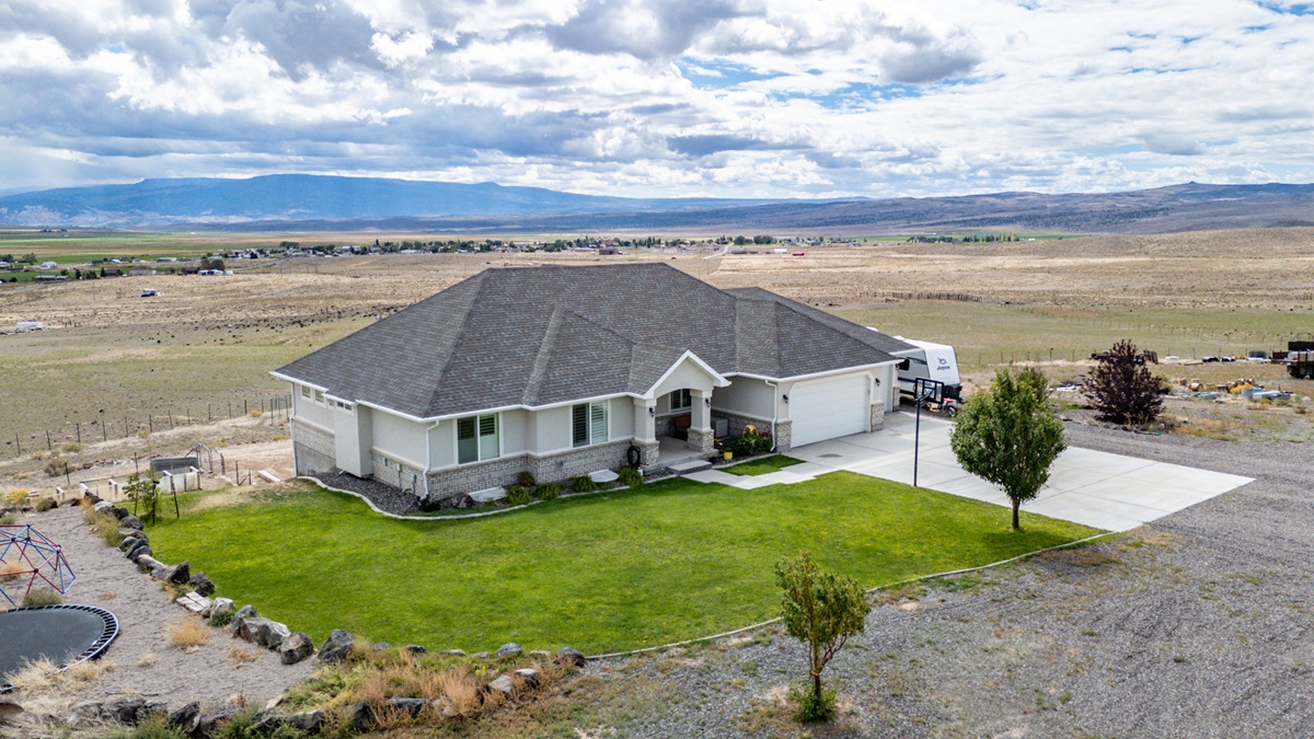 Situated on 4.67 acres, the location is exceptional with absolute privacy and expansive views across the whole valley. The yard is designed for minimal upkeep with grass and mature trees in the front with an efficient irrigation system of sprinklers and drip lines. County road access. Private well. 351 W Skyline Drive, Loa. $645,000.