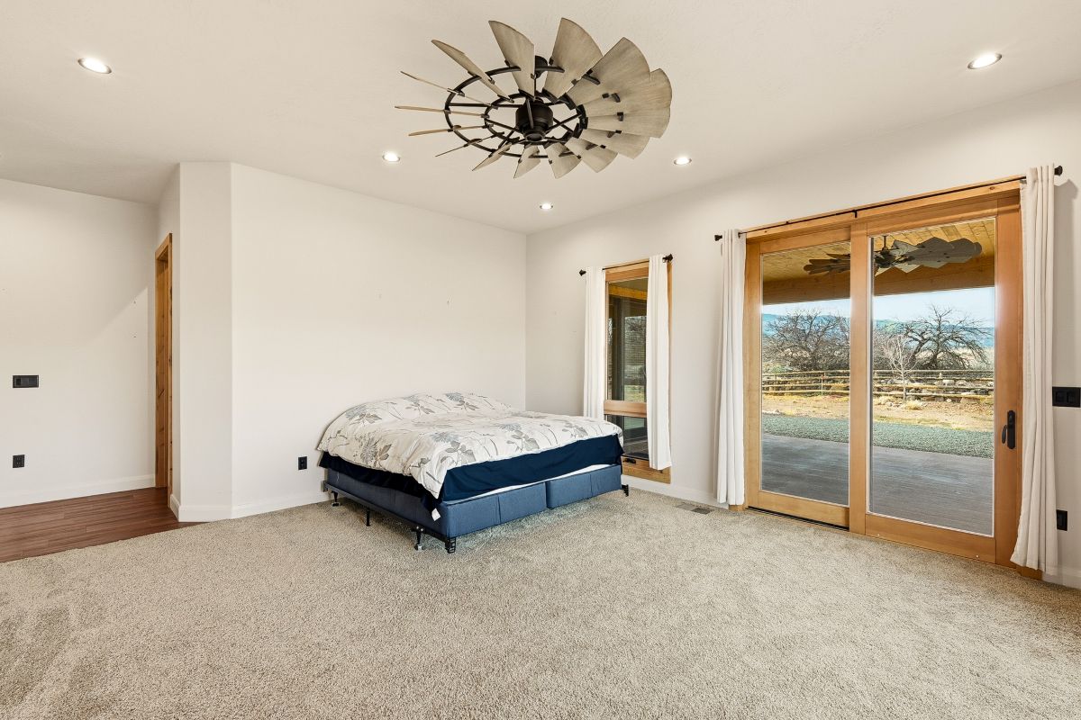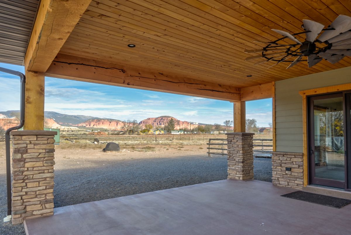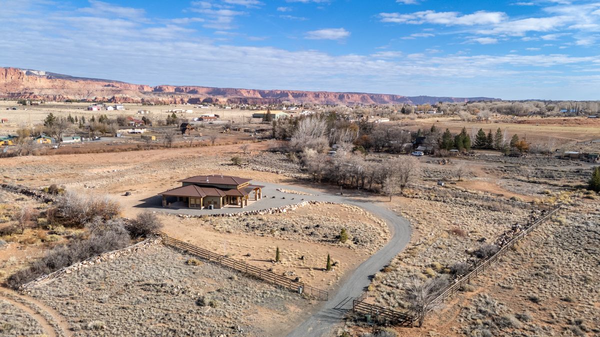 Storage space that is necessary for rural living is extensive throughout. The top-of-the-line windows in all the rooms serve to welcome the outdoors. High ceilings provide an extra feeling of space. With energy efficiency, the home is heated with a heat pump and can be either propane or electric. An economical wood stove is also included. Cooling is with a central air system. The home has the advantage of Torrey city water as well as two shares of irrigation water. A full RV connection is available for guests. All in all, it is a very comfortable home in a quiet, private part of Torrey that provides many options for a choice of lifestyles.